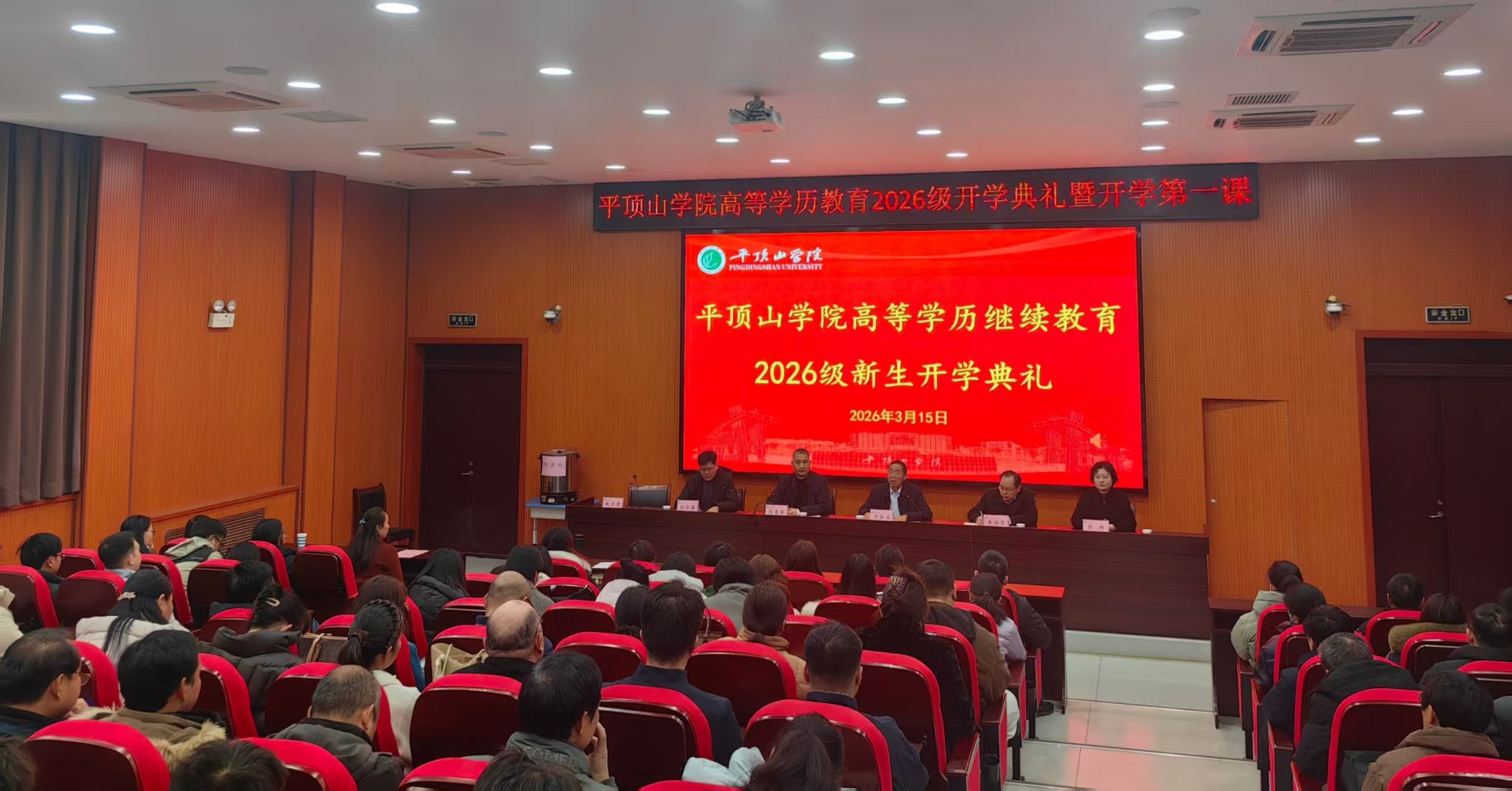 我校高等学历继续教育2026级新生开学典礼暨开学第一课于2026年3月15日上午9点在崇文校区C004教室隆重举行。副校长于长立出席典礼并讲话,继续教育学院全体教师及139名新生代表到现场参加本次典礼。全省两千余名新生通过线上同步参与。典礼由继续教育学院院长马书军主持。