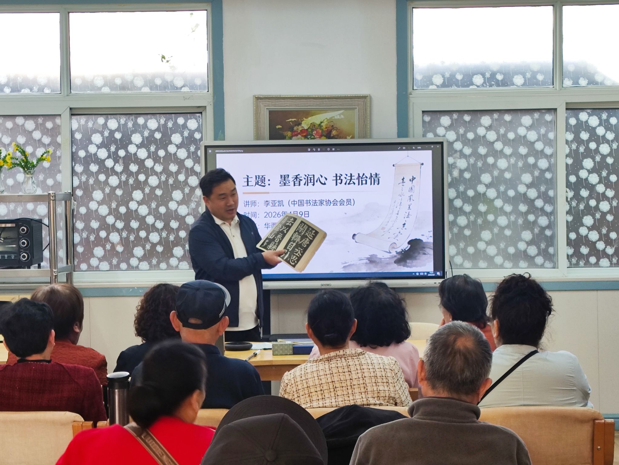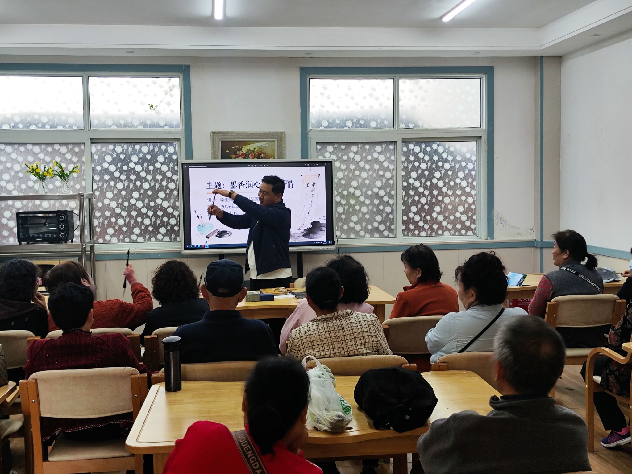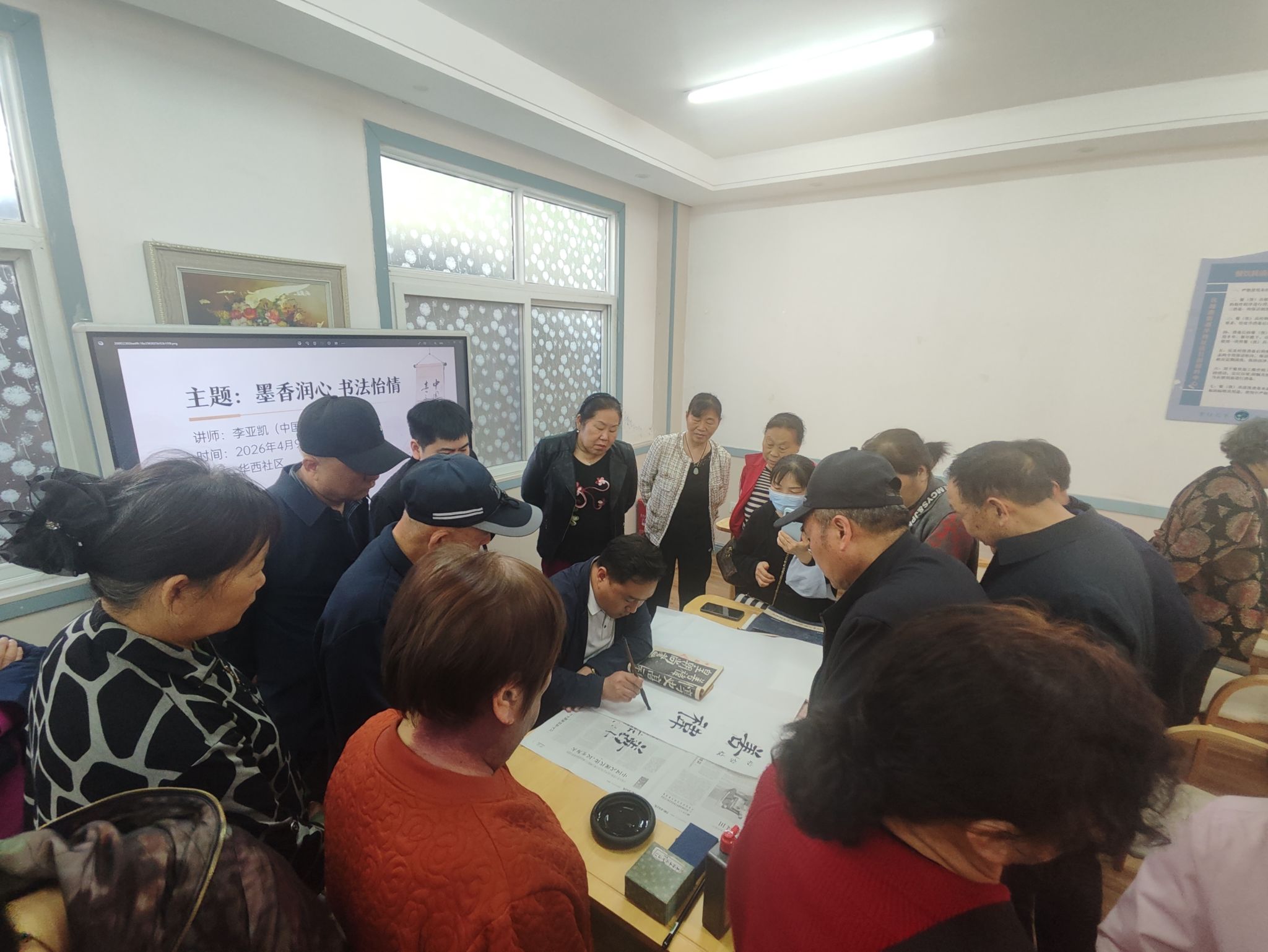 为传承和弘扬中华优秀传统文化,丰富社区居民的精神文化生活,4月9日,平顶山学院社区学院邀请平顶山学院客座教授李亚凯为卫东区华西社区居民开展“墨香润心 书法怡情”主题活动,吸引了众多居民参与。